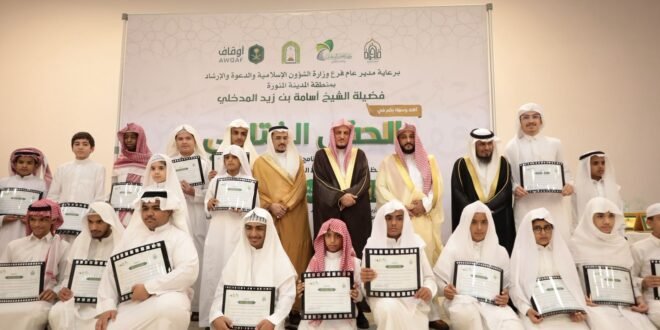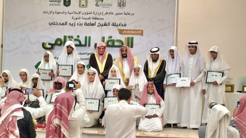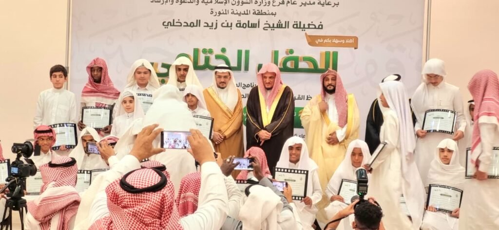 برعاية فرع وزارة الشؤون الإسلامية بالمدينة المنورة.. وقف تعظيم الوحيين يقيم الحفل الختامي لمقارئ حفظ القرآن الكريم وحفظ الصحيحين المدينة المنورة 08 أكتوبر 2025 م أقام وقف تعظيم الوحيين بالمدينة المنورة مساء اليوم الحفل الختامي لبرنامج المقارئ الخاصة بحفظ القرآن الكريم والسنة النبوية، وذلك في مركز الأمير سلطان الاجتماعي بحي العريض، برعاية مدير عام فرع وزارة الشؤون الإسلامية والدعوة والإرشاد بمنطقة المدينة المنورة الشيخ أسامة بن زيد المدخلي وبإشراف ومتابعة من الأمين العام للوقف فضيلة أ.د عماد بن زهير حافظ . ويأتي البرنامج ضمن الجهود المستمرة للوقف في تعليم كتاب الله وسنة نبيه ﷺ من خلال المقارئ القرآنية التي يشرف عليها، والتي تُعد من البرامج التعليمية المتواصلة التي تُعنى بإقراء الطلاب وإعدادهم للمنافسات المحلية والدولية في علوم القرآن والحديث. وشهد الحفل تكريم أكثر من (150) طالبًا من الأوائل والمتميزين في اختبارات فروع القرآن الكريم، و(50) طالبًا من المتميزين في اختبار الحديث النبوي الشريف، كما تم خلال المناسبة تدشين الهوية البصرية الجديدة لمقارئ وقف تعظيم الوحيين. وبيّنت الإحصاءات أن عدد الطلاب المشاركين في البرنامج لهذا العام بلغ (153) طالبًا، منهم (117) في فروع القرآن الكريم و(36) في فروع الحديث النبوي، حيث شملت مستويات الحفظ طلابًا أكملوا حفظ القرآن كاملًا وآخرين أتموا حفظ أجزاء متعددة تراوحت بين ثلاثة وعشرين جزءًا. وتضمّن الحفل عرضًا وثائقيًا حول مسيرة المقارئ وإنجازاتها، وكلمة راعي الحفل التي أشاد فيها بجهود الوقف في خدمة القرآن والسنة، مؤكدًا أن مثل هذه البرامج تُسهم في تحقيق رسالة المملكة في العناية بكتاب الله وسنة نبيه ﷺ، ونشر العلم الشرعي بين الناشئة. ويواصل وقف تعظيم الوحيين برامجه التعليمية والتأهيلية على مدار العام من خلال فصول ودورات متخصصة في حفظ القرآن الكريم والحديث النبوي، تحقيقًا لأهدافه في غرس القيم القرآنية والنبويّة في المجتمع.