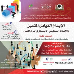 الرئيسية / الإبداع القيادي المتميز والإعداد التنظيمي الابتكاري لفرق العمل / تصميم-دورات-محمود-نساء-28